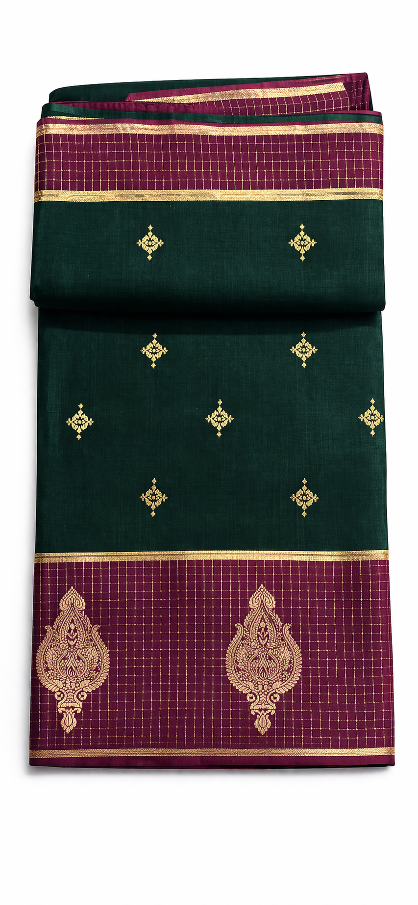 Deep Green Banarasi Soft Silk Saree with Wine Purple Zari Border and Rich Woven Pallu