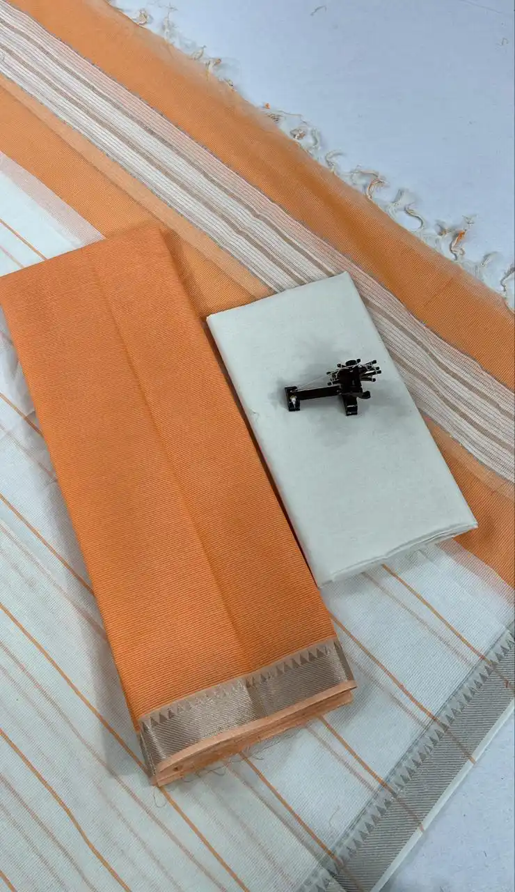 Orange Mangalagiri Handloom Cotton Nizam Zari Border Fabric