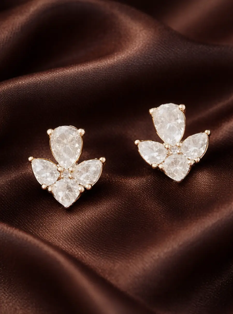 The Trinity Bloom Diamond Stud Earrings feature a graceful three-petal silhouette crafted with pear-cut stones arranged in a floral formation. Each petal reflects light beautifully, creating a soft yet radiant sparkle that enhances both everyday elegance and occasion wear.